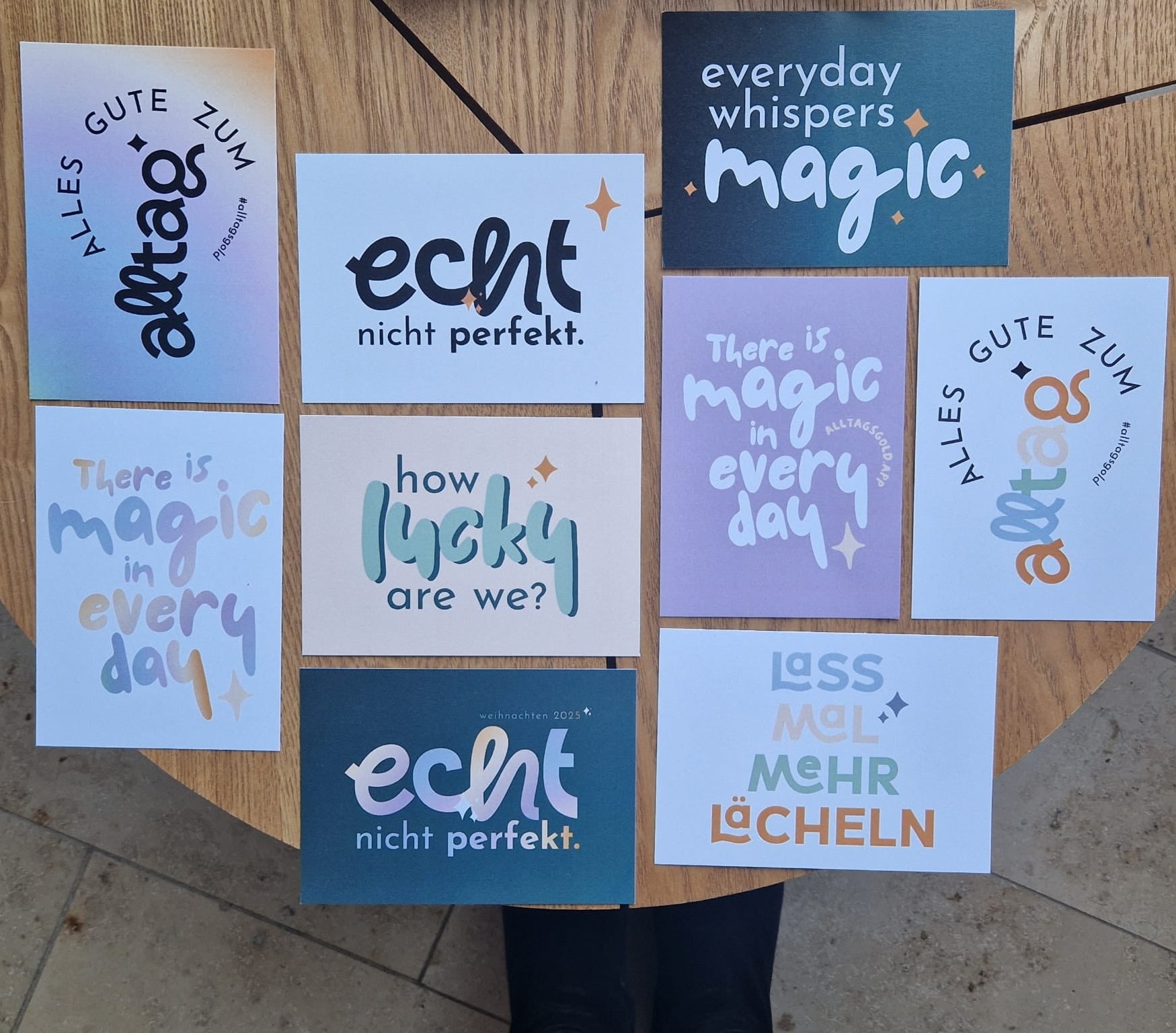 Alltagsgold Postkarten Set, die dich daran erinnert, mehr zu lächeln und die kleinen Momente im Leben zu feiern.